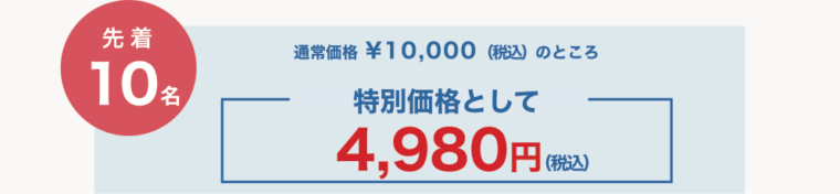 今回の特別価格の募集は先着10名に限らせていただき、定員になり次第締め切りとさせていただきます。